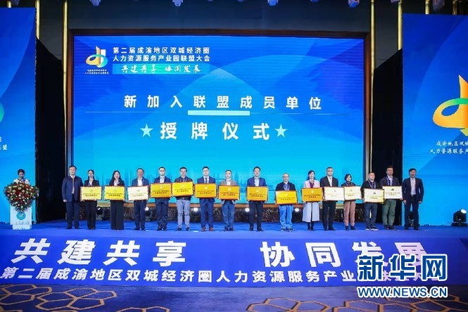 第二屆成渝地區(qū)雙城經(jīng)濟圈人力資源服務產(chǎn)業(yè)園聯(lián)盟大會授牌儀式。新華網(wǎng)發(fā)(重慶市人力社保局供圖)